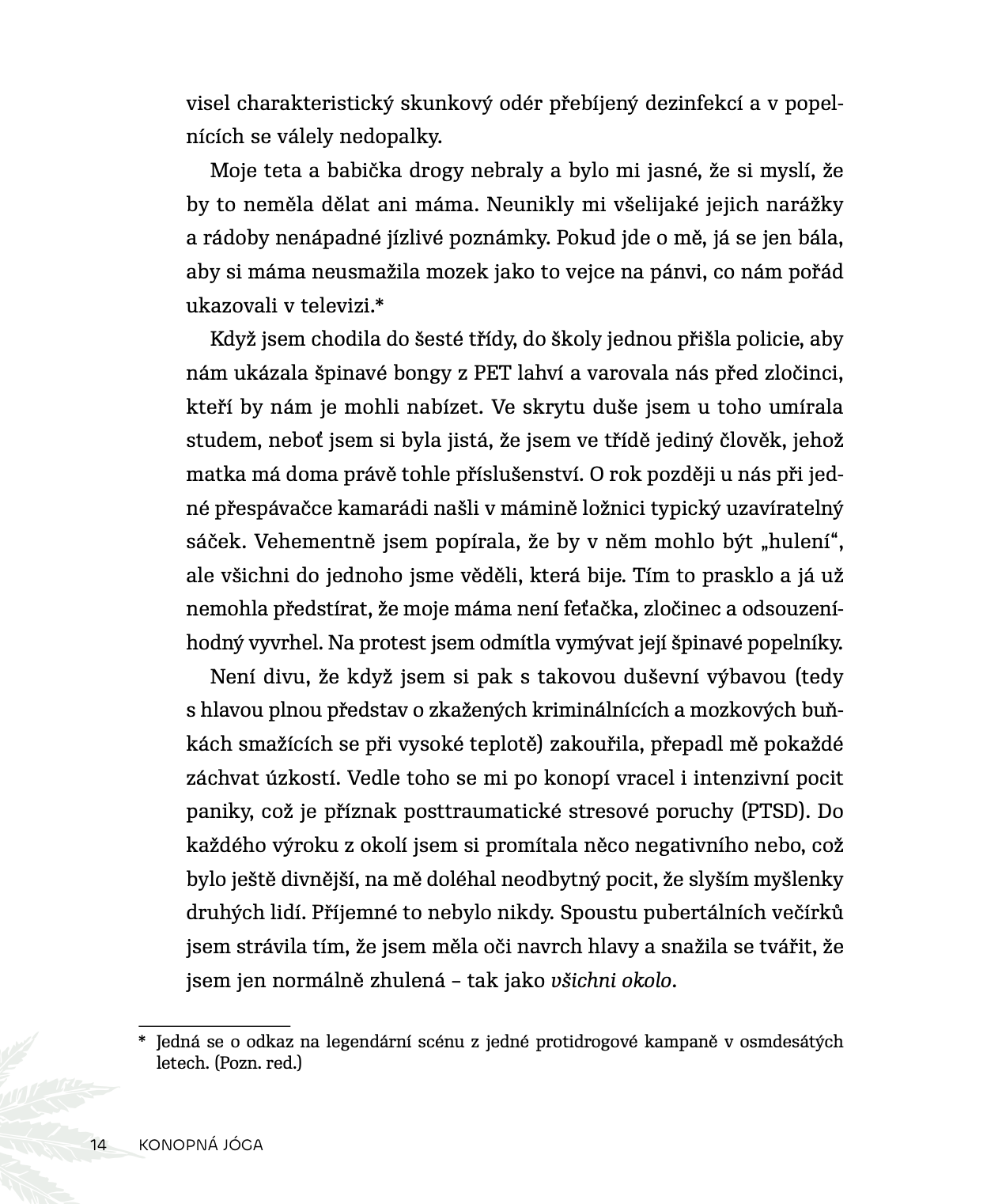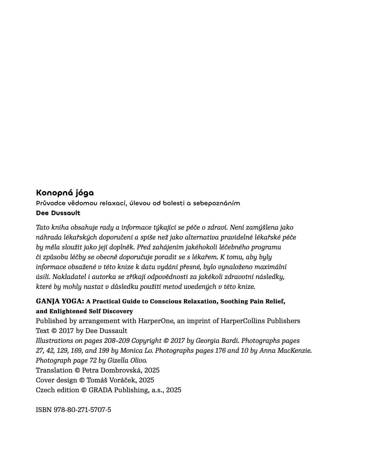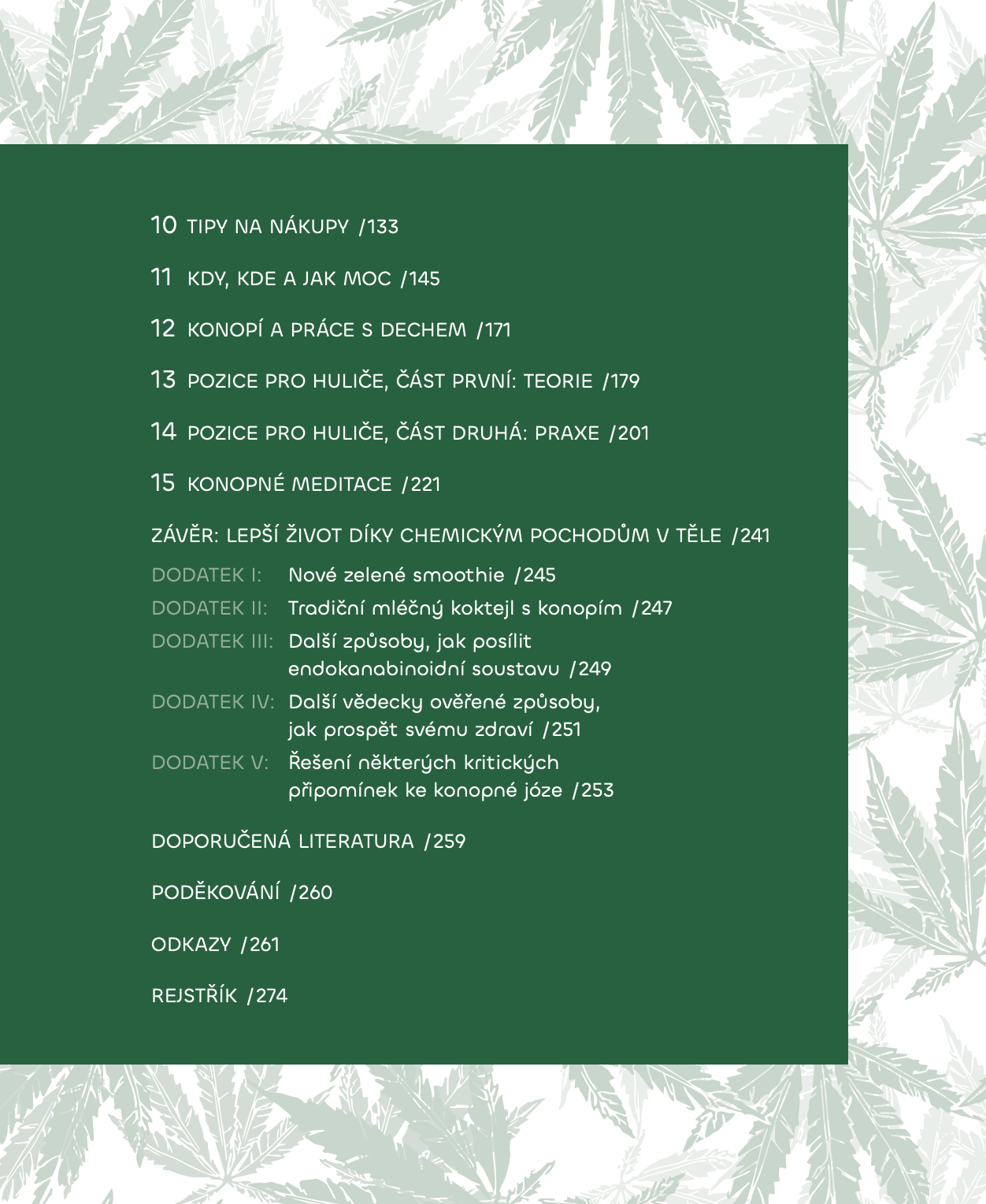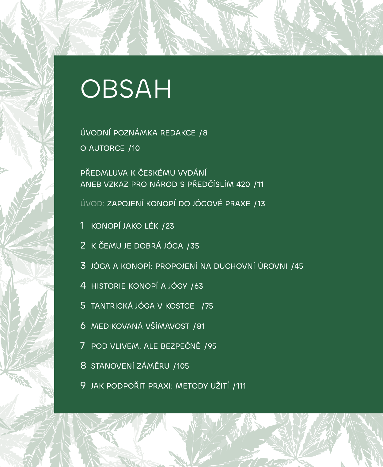 Díky snadno pochopitelnému i vtipnému výkladu se dozvíte, jak si pro svou praxi vybrat ideální prostředí a metodu užití, jak se vyznat v konopných odrůdách, proč konopí léčí a jak ve svůj prospěch využít jógové pozice a dechové techniky. Proniknete do tajů této časem prověřené tradice, která posílí vaši schopnost být v přítomnosti, hýbat se s radostí a povznést se nad trable světa i ega.